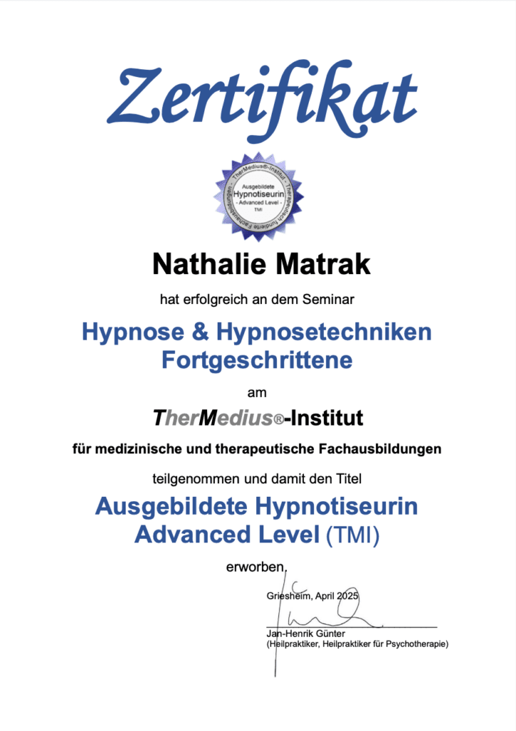 Das hat mich so fasziniert, dass ich anschließend selbst die Ausbildung zur Hypnotiseurin gemacht habe (Basis- und Fortgeschrittenenkurs, sowie Zusatzqualifikation zur Stellvertreterhypnose bei TherMedius®). Heute bin ich zertifizierte Hypnotiseurin und setze dieses kraftvolle Tool in meiner Arbeit ein, u. a. zur Auflösung von Geld-Blockaden oder anderen Themen, die die Potenzialentfaltung und den Schritt in die erfolgreiche Selbstständigkeit behindern.